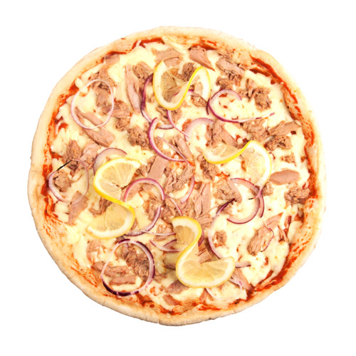 Pizza Tonno E Cipola – O călătorie culinară italiană! Sosul de roșii, tonul și ceapa se împletesc sub crusta crocantă pentru un gust autentic.
